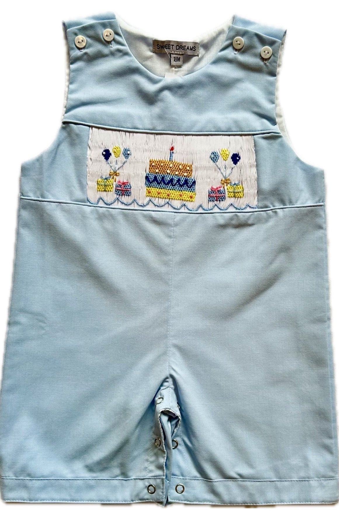 Get ready to celebrate in style with our Happy Birthday Smocked Jon Jon! Perfect for any little boy's big day, this outfit will make them feel extra special. Don't miss out on the fun!